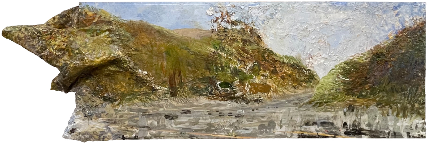 , 37 1/2 x 115 inches, oil on canvas, paper and wood board
